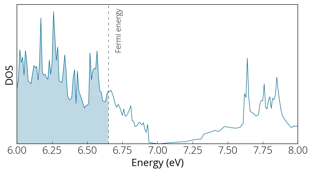In order to sample the point for our DOS calculation, an odd k-grid mesh (25✕25✕5) was used. The signature of Dirac cone is evident from the DOS figure.