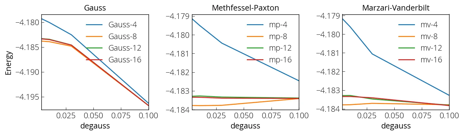 convergence while depending less on degauss value than Gaussian broadening.