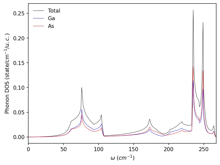 freq, dos, pdos_Ga, pdos_As = np.loadtxt("../src/GaAs-phonon/GaAs.dos", unpack=True)